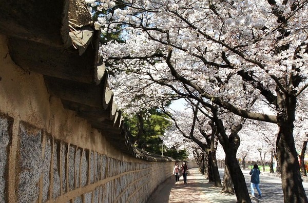 대릉원 돌담길의 매력적인 벚꽃 풍경