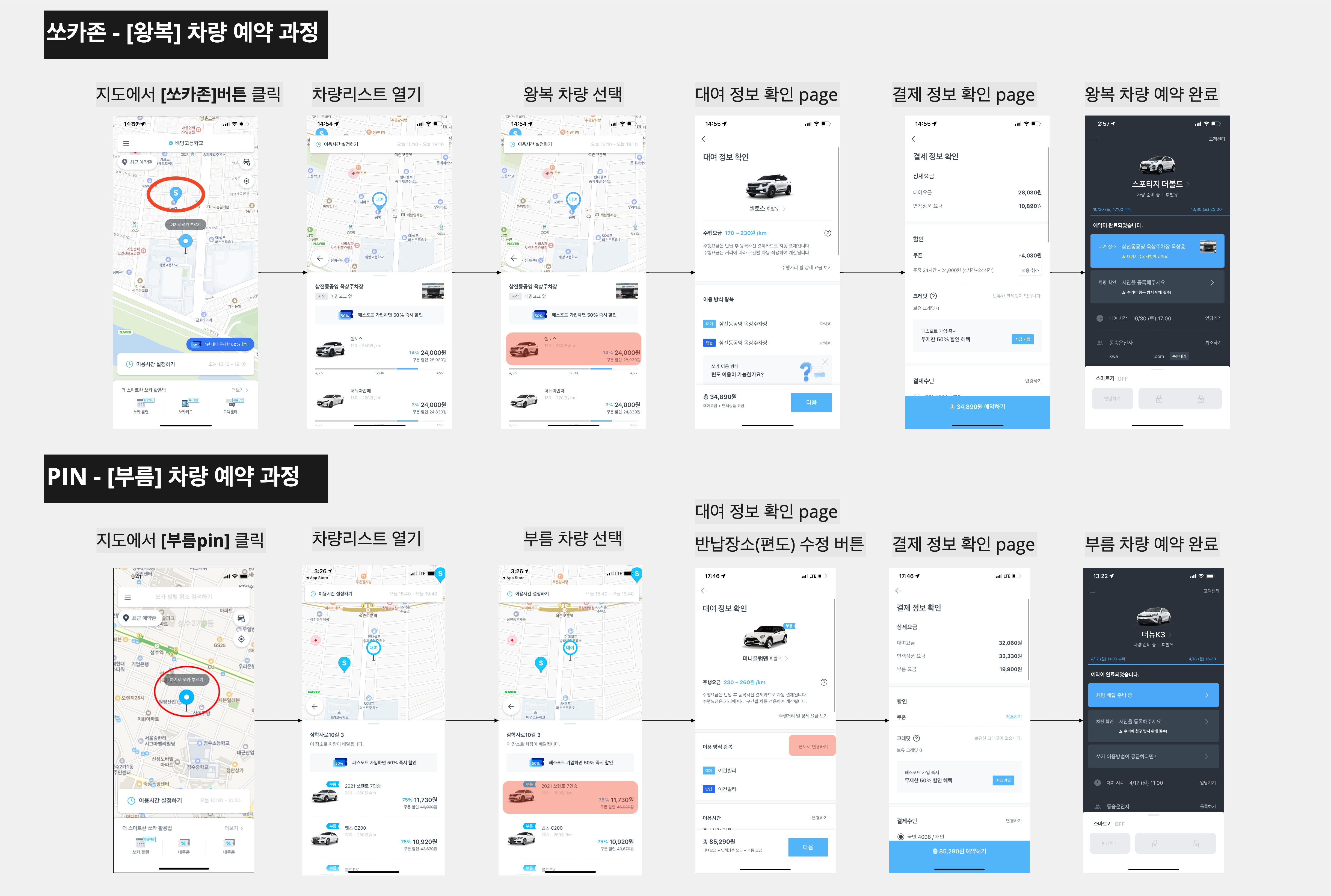 1. 쏘카존 선택 및 예약 시작