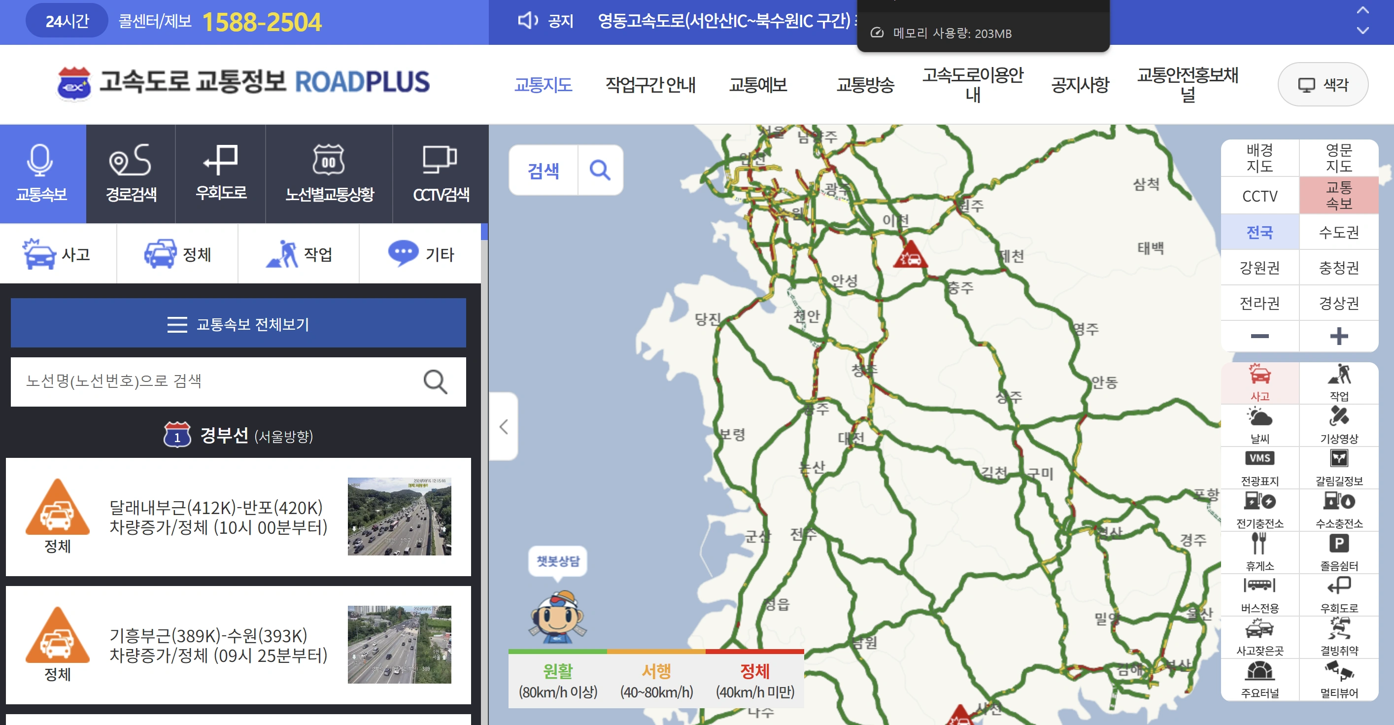교통상황은 수시로 변할 수 있으므로, 운전 중 휴게소에서 실시간 고속도로 교통상황을 재확인하는 것이 좋습니다. - 대체 경로 파악하기