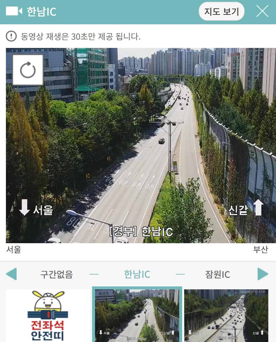 실시간 고속도로 교통상황 CCTV를 통해 정체가 심한 구간이 확인되면, 대체 경로를 미리 파악해둡니다.