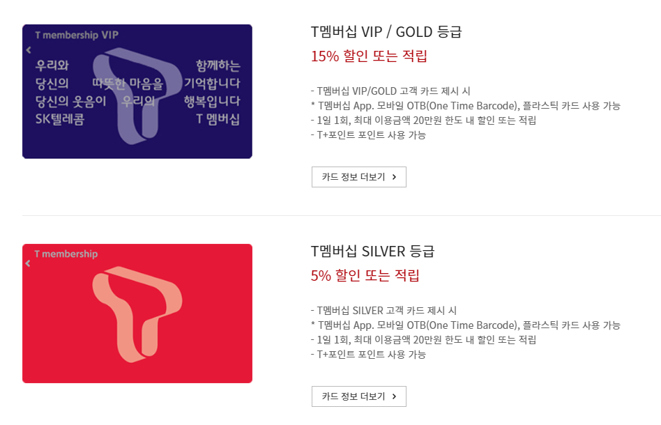 중복할인(카드할인, 통신사할인 등)