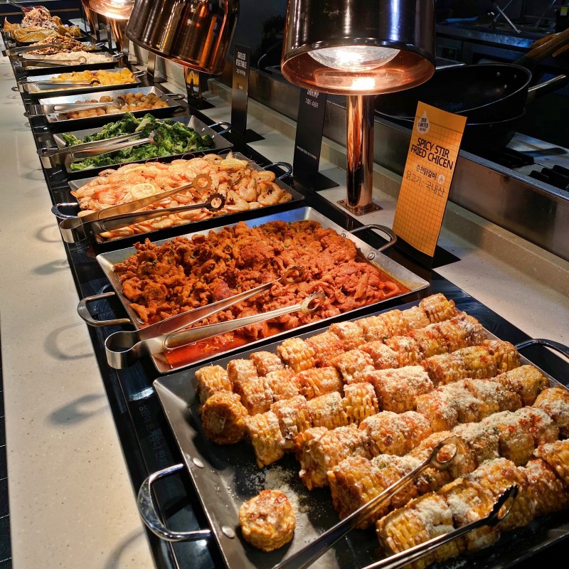 • 샐러드 바: 다양한 채소와 드레싱으로 구성된 샐러드 바