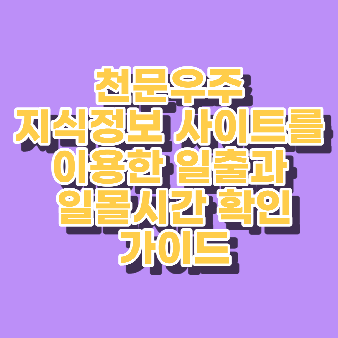 천문우주지식정보 사이트에서는 생활천문관의 '일출일몰시각계산' 메뉴를 통해 일출과 일몰 시간을 조회할 수 있습니다. 해당 메뉴를 통해 일출과 일몰 시간을 확인하려는 날짜와 위치를 입력하면, 그에 대한 정확한 시간 정보를 얻을 수 있습니다.