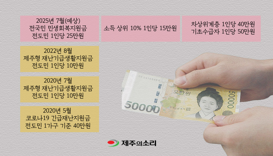 ① 기초생활수급자: 1인당 50만 원 (건강보험료 최하위 구간)