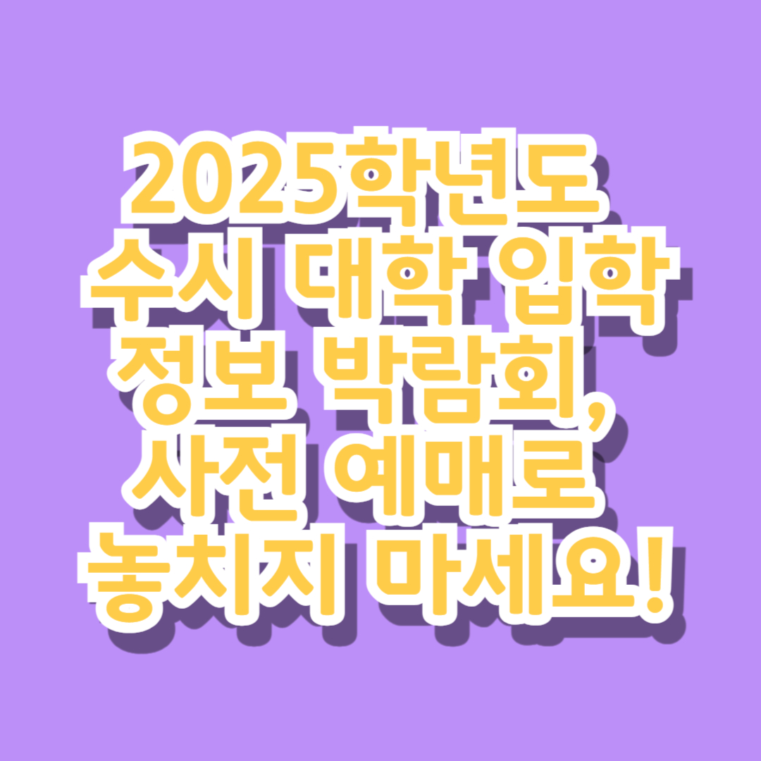 이 박람회를 통해 얻은 정보가 여러분의 대학 입시에 큰 도움이 되길 바랍니다. 지금 바로 사전 예매를 진행하여, 대기 없이 빠르게 입장하세요!
